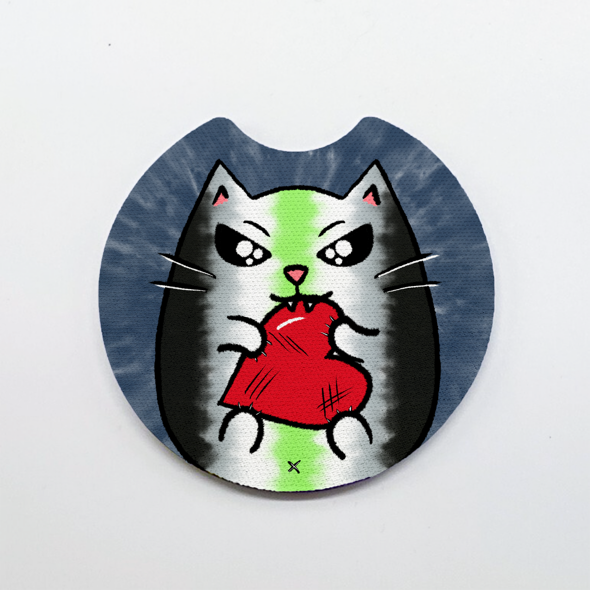 Neoprene car coaster featuring the original artwork of SpootyLady. The car coaster measures 2.75 inches (70 mm) wide by approximately 0.2 inch (5 mm) thick.